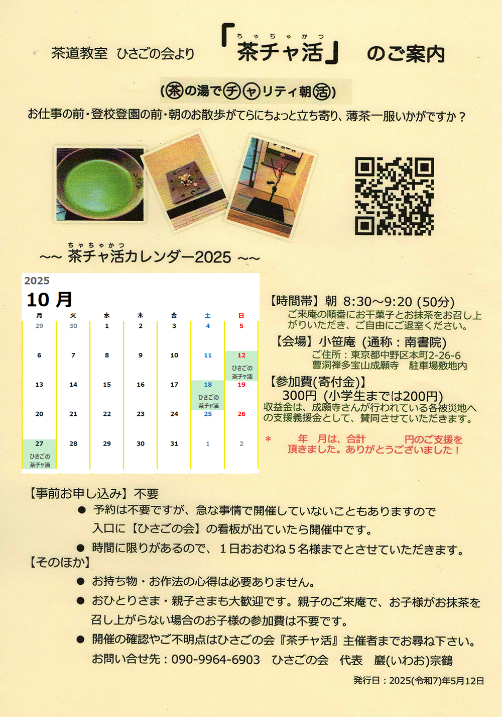 茶道教室 ひさごの会より『茶チャ活』のご案内